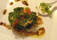 | Entrée : Petite marinade de rouget barbet à l'huile d'olive, tomate en tapenade. |